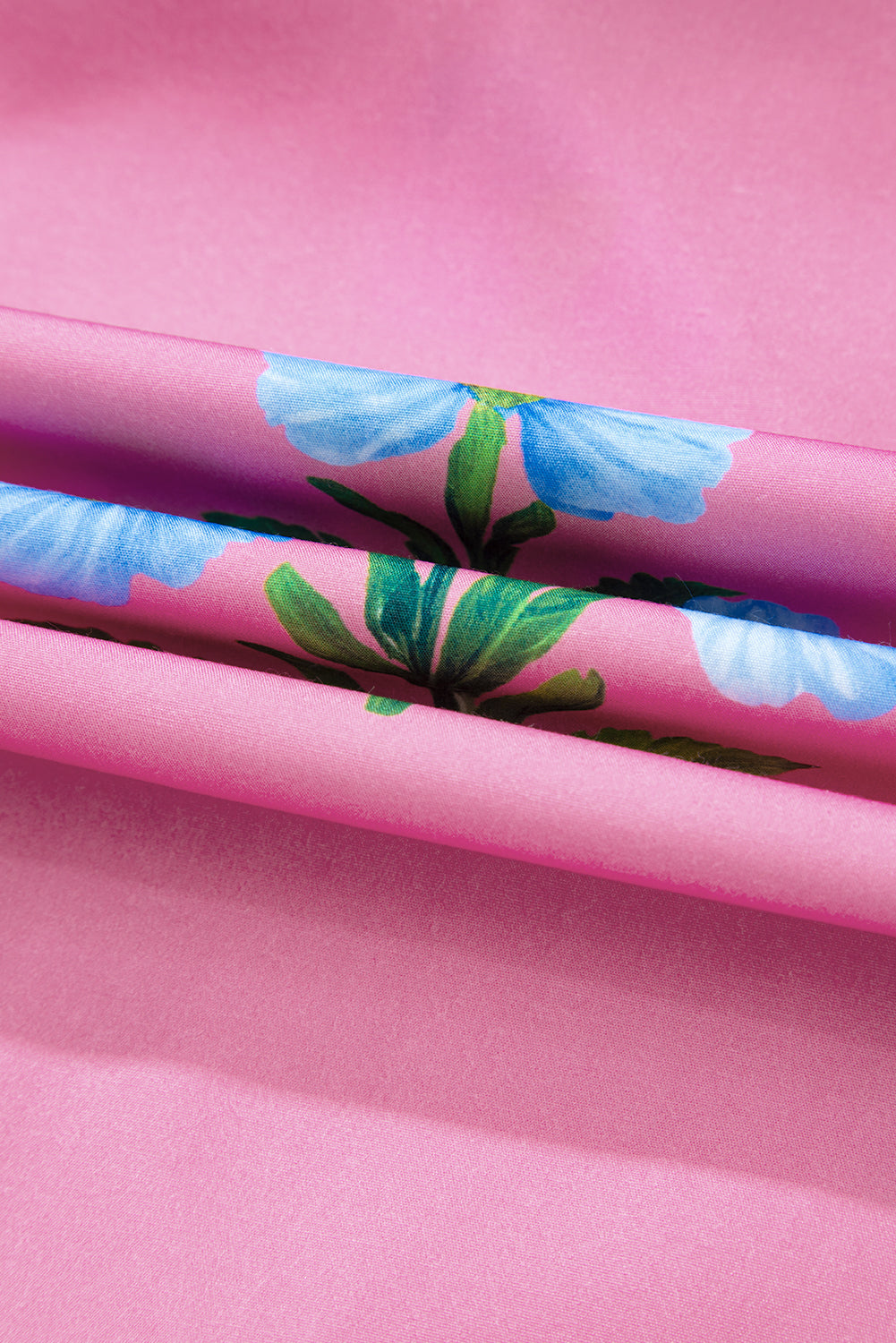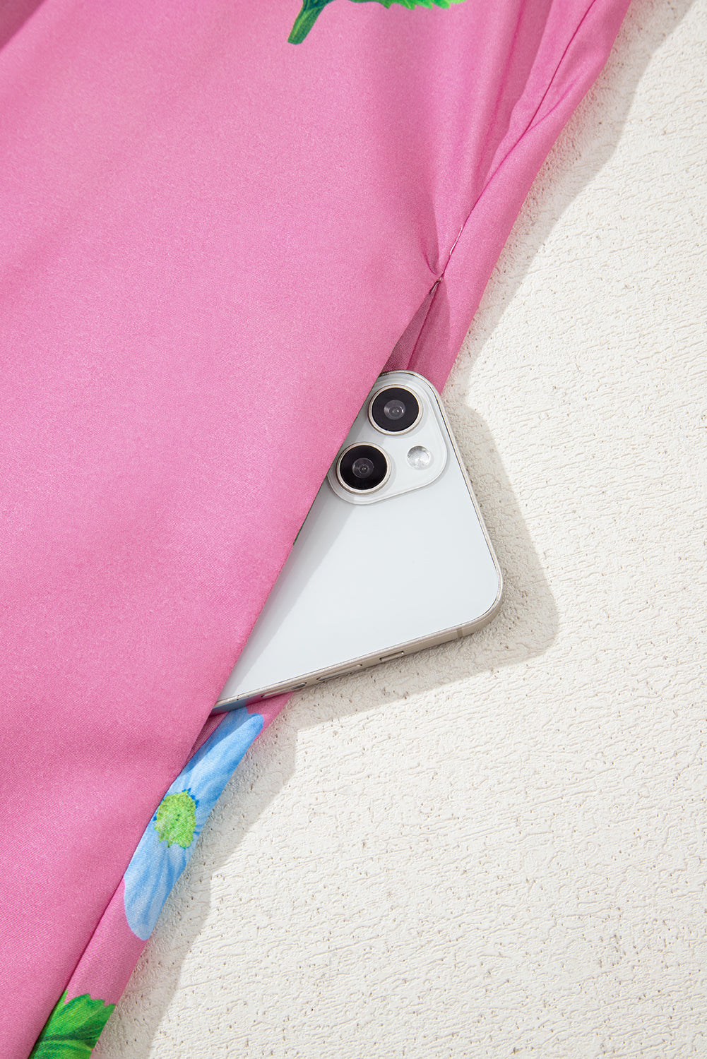 • 🎀 Design highlight: Pink base with vibrant floral prints + stitched neckline